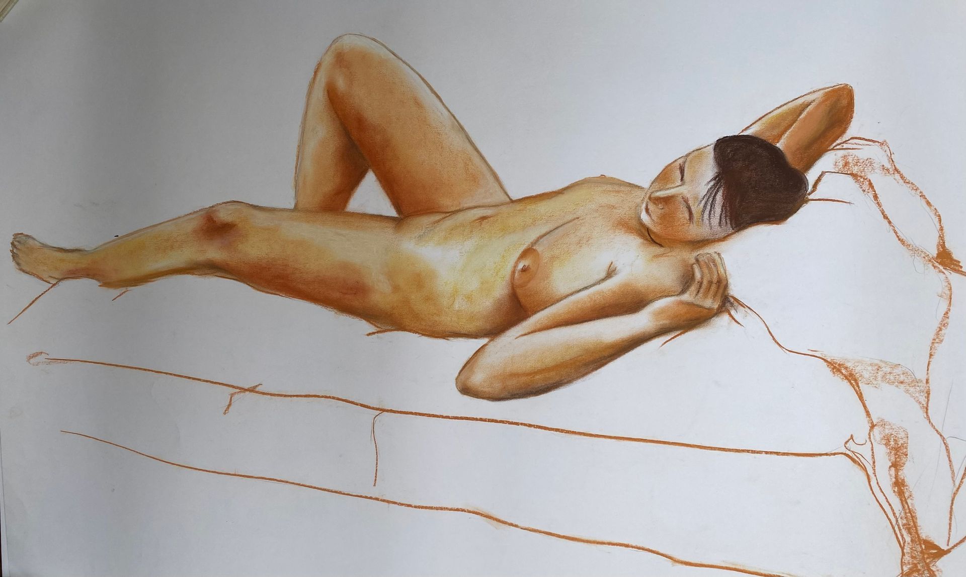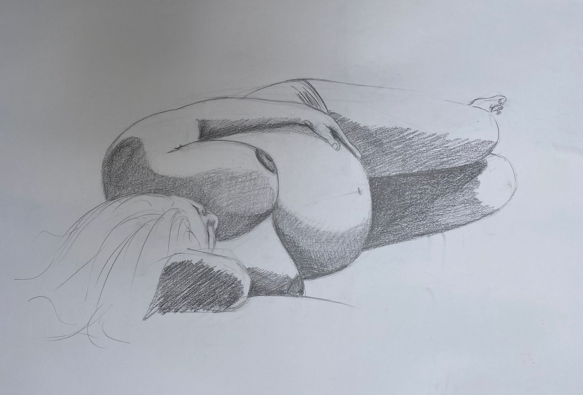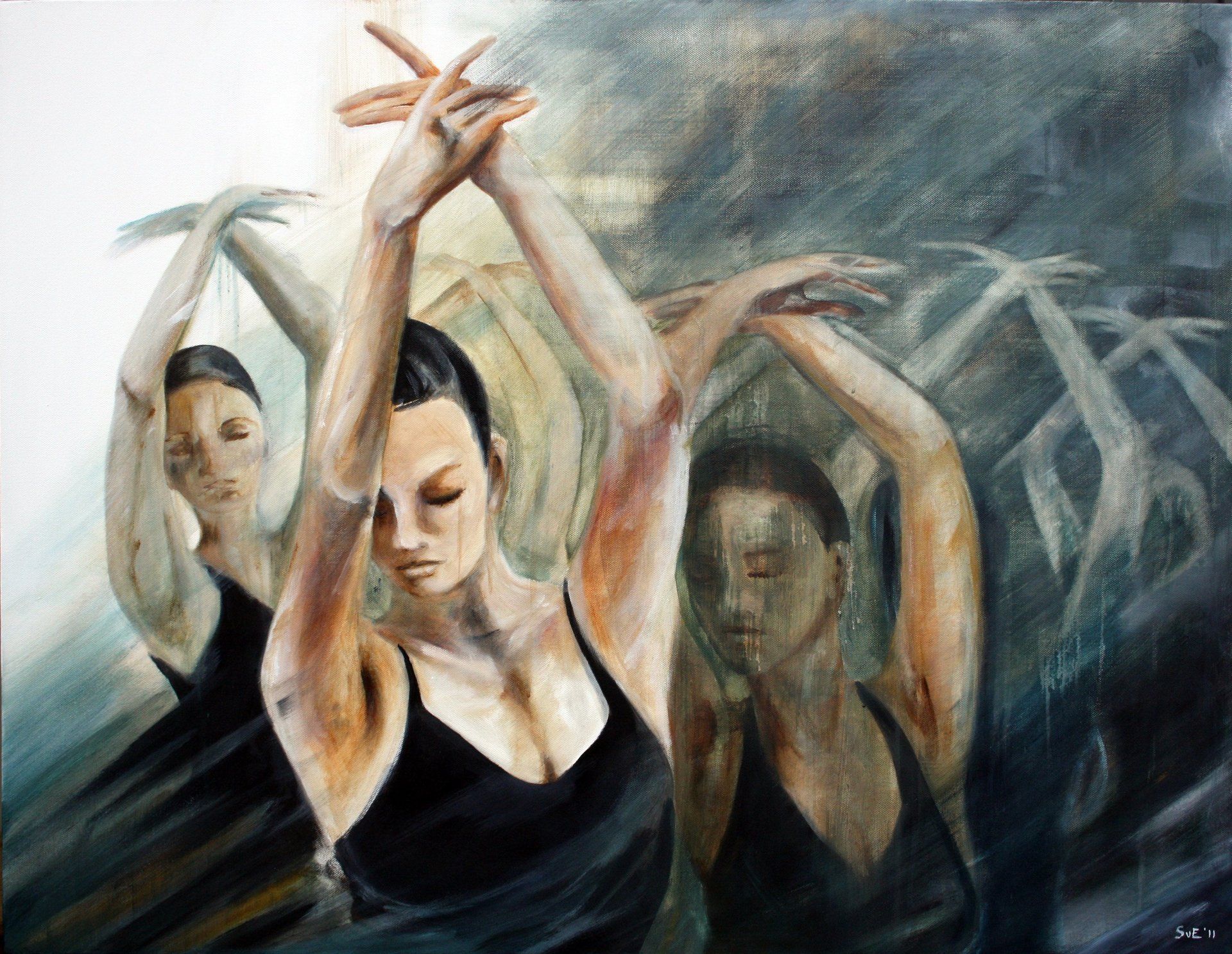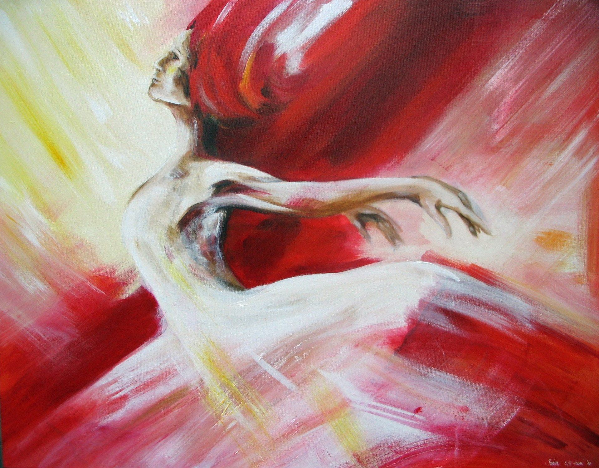Mensfiguren geabstraheerd of juist figuratief. Sommige doeken zijn eerst bewerkt met vliegerpapier.